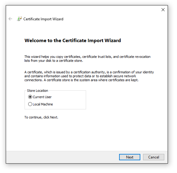 Click the Install certificate button. The next screen may differ to the following screen, but click next until you reach a screen that looks like this: